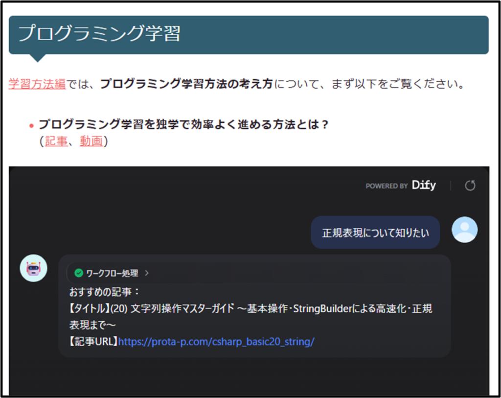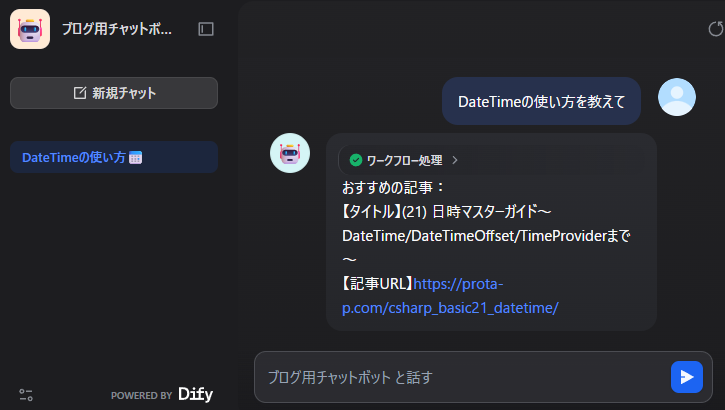 また、既存のWebアプリ(例:C# Blazorなど)を開発する際に、AI機能の部分だけをDifyで作成し、APIを介して連携させることもできます!