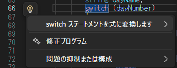 }「switchステートメントを式に変換します」を選びます。