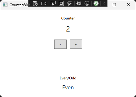 var mainViewModel = new MainViewModel(counterViewModel, evenOddViewModel);