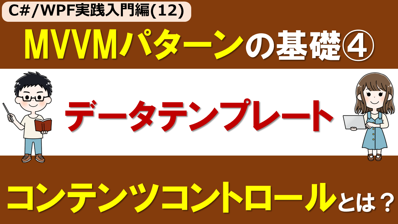 【C#/WPF実践入門編(12)】MVVMパターン/アーキテクチャの基礎④ ~データテンプレートとコンテンツコントロールで実現する宣言的なView-ViewModel紐付け~