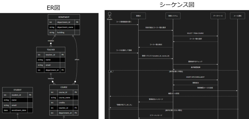 Copilot Chatに「このコードのXXX機能部分をYYY図にして」と頼めば、以下のようにMermaid形式で生成してくれます。