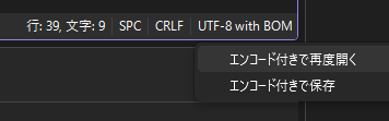 • ファイルのエンコーディングが表示され、エンコーディング変更も容易に