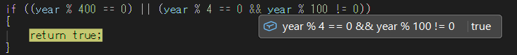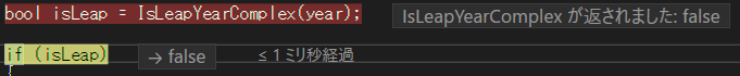 if文のデバッグ時に、条件の評価結果がインラインで表示されるようになりました。複合条件の各部分がどう評価されたかを個別に確認できます。