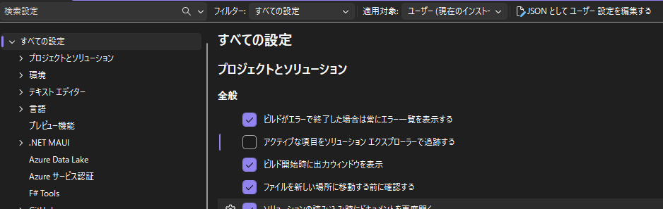 従来の「ツール → オプション」ダイアログが、Fluent UIに準拠した新しい設定画面に置き換わりました。設定項目が整理され、見やすく・探しやすくなっています。